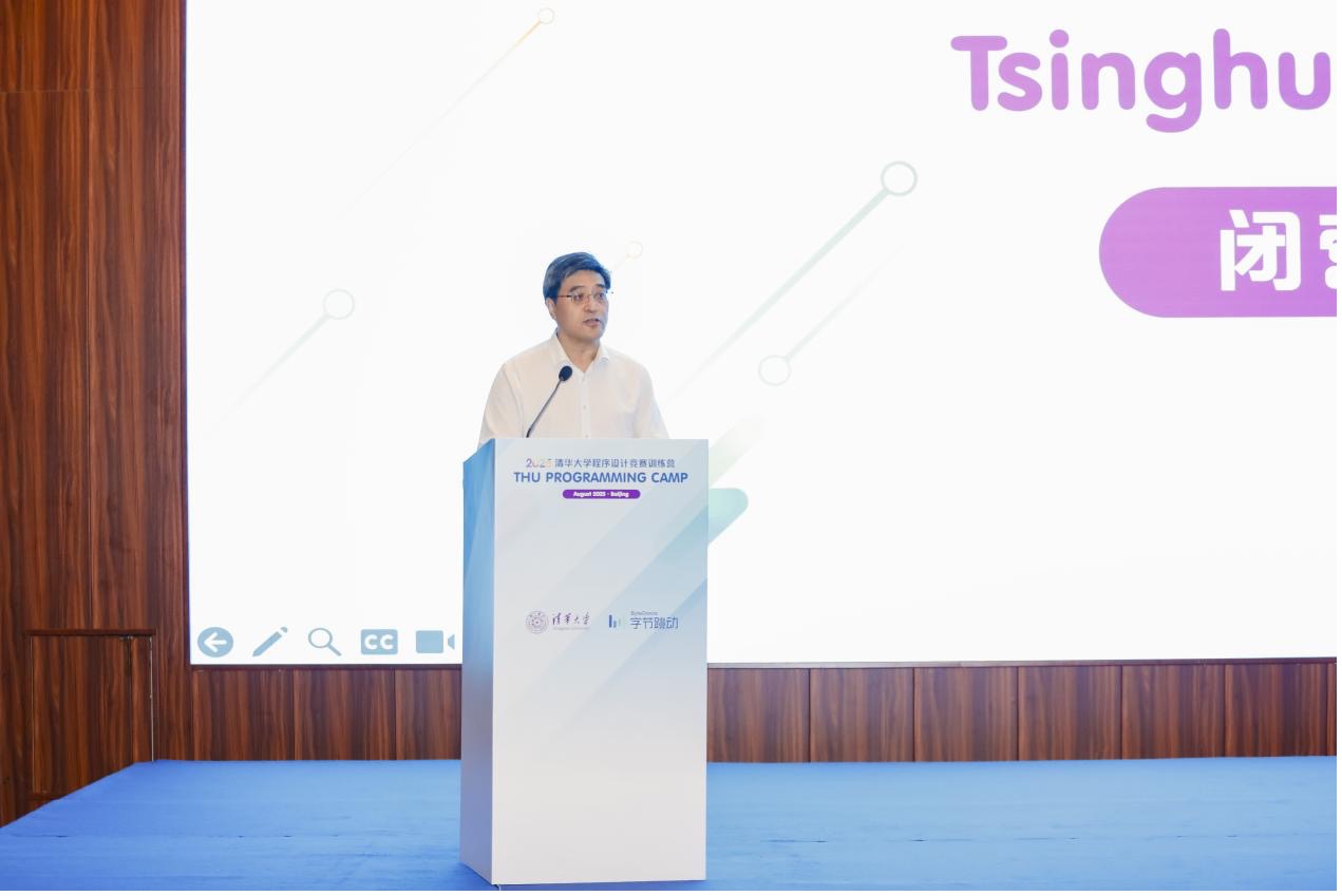 在8月9日的闭营仪式上,清华大学副校长、中国科学院院士姜培学指出,在数字化浪潮席卷全球的今天,程序设计早已超越技术本身,成为推动社会进步的核心动力。为促进计算机人才培养与交流,清华大学在字节跳动的支持下,自2023年开始举办程序设计竞赛训练营,今年已经是第三届。我们与国际顶尖教练团队合作,开放宝贵的题库资源,对标ICPC全球总决赛,为同学们搭建备战切磋与实战模拟的平台,力争打造中国程序设计训练营的高端品牌。最后他祝愿即将参加第49届ICPC全球总决赛的同学们取得好成绩,并对字节跳动表示由衷地感谢,希望未来双方建立长效合作机制,共同促进校企互动与资源嫁接。